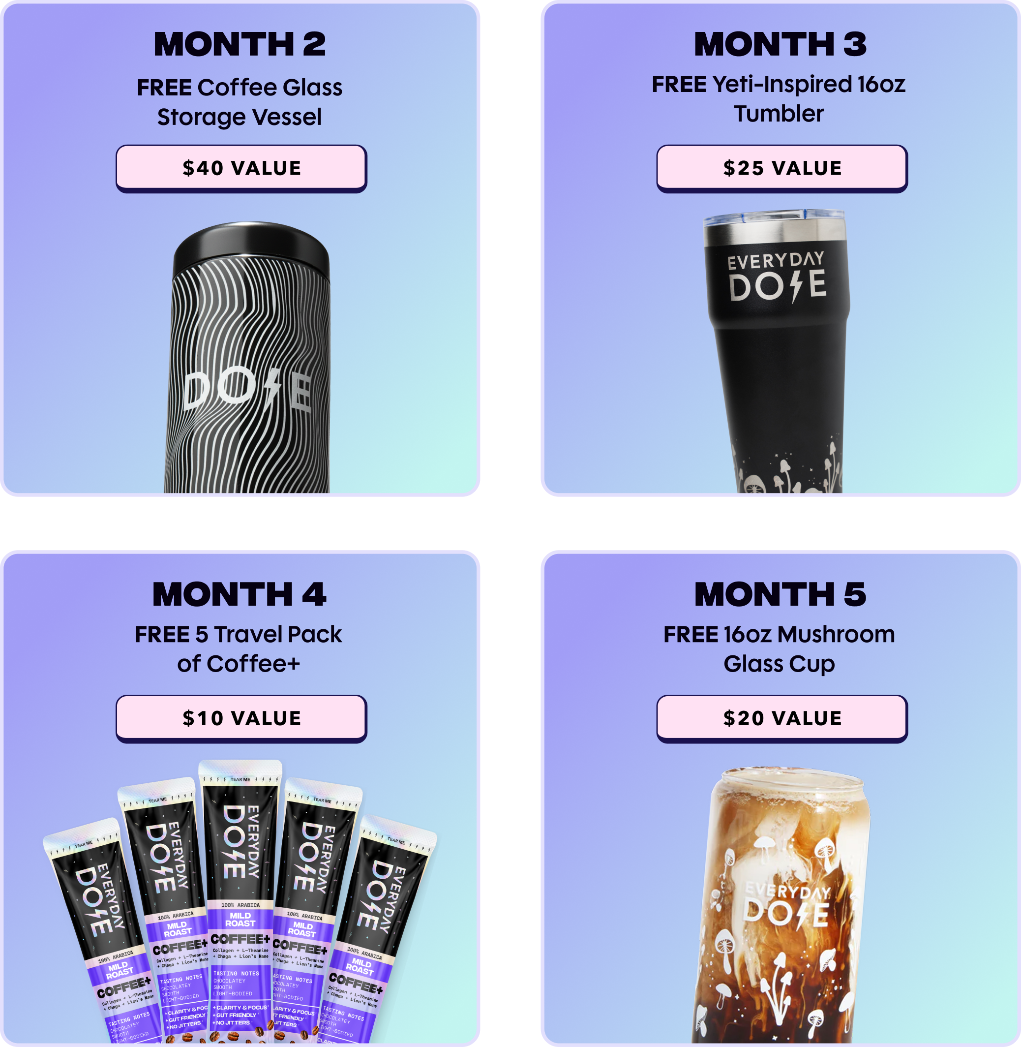 Everyday Dose Coffee+ contains five clean, functional ingredients: