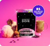 Everyday Dose aborda los problemas del café común, al tiempo que amplía drásticamente sus beneficios. Tomamos lo que nos encanta del café (sabor, ritual y energía) y eliminamos lo que no nos gustaba (bajones, ansiedad, nerviosismo, sueño deficiente y problemas digestivos). Al mezclar extracto de café bajo en cafeína y baja acidez con una cantidad eficaz de cuatro ingredientes increíbles que mejoran la energía, la concentración, el estado de ánimo, el sueño, la salud intestinal y la inmunidad, creamos una bebida que realmente no se puede comparar con el café, aparte del sabor y el ritual... que es exactamente lo que buscábamos.