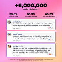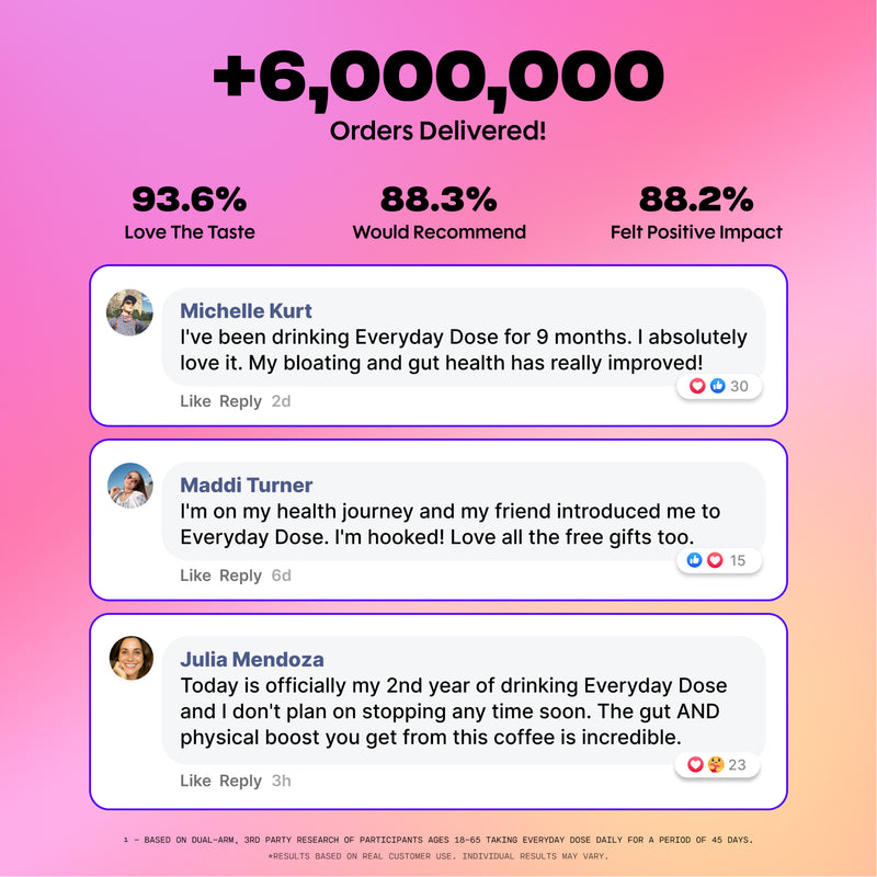 Normal coffee might give you a short boost of energy, but it’s often followed by jitters, crash, poor sleep, or stomach problems. Everyday Dose keeps everything you know and love about coffee (taste, ritual) without all the side effects , plus with a ton of new benefits.