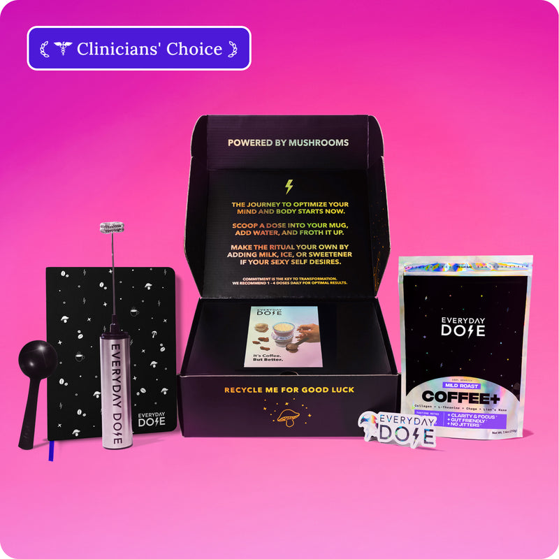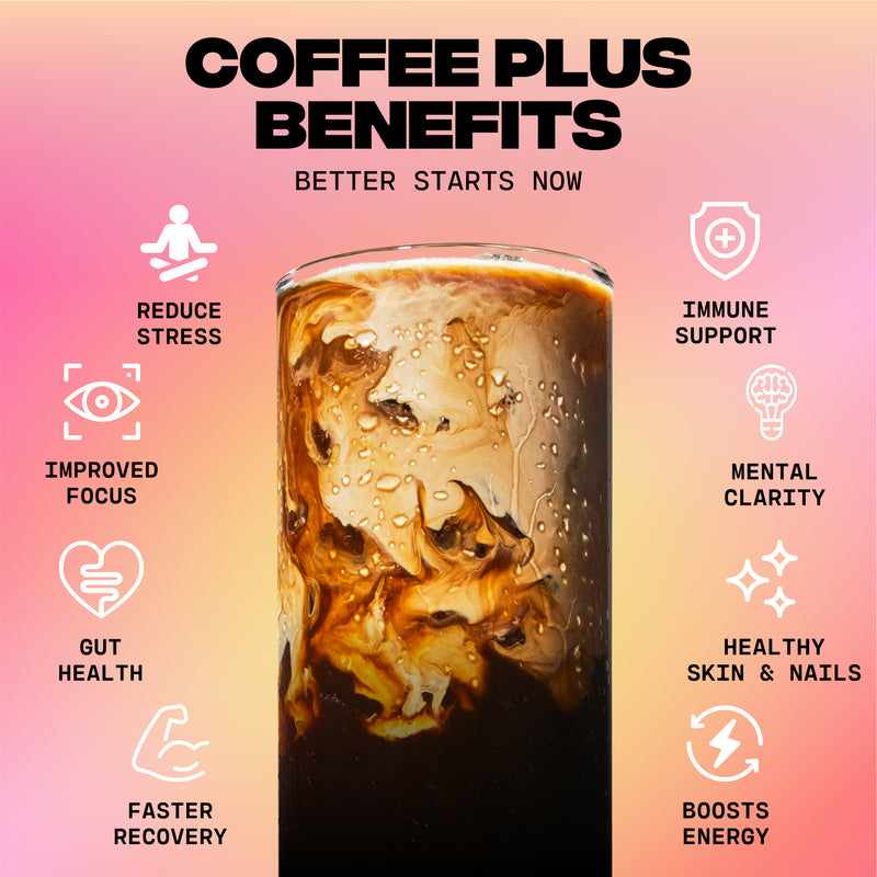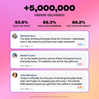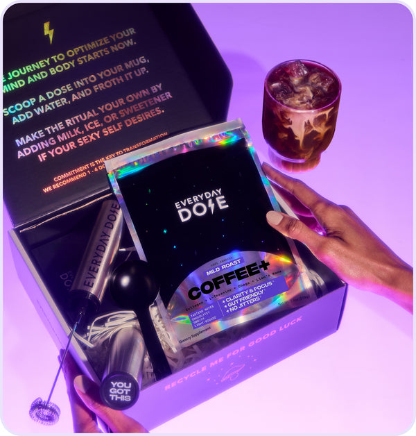 Everyday Dose addresses issues with regular coffee, while drastically building on its benefits. We took what we love about coffee (taste, ritual, and energy) and removed what we didn’t (crash, anxiety, jitters, poor sleep, and digestive issues). By blending low-caffeine, low acidity coffee extract with an effective quantity of four amazing ingredients that improve energy, focus, mood, sleep, gut health, and immunity, we created a drink that really can’t be compared to coffee aside from the taste and ritual... which is exactly what we were going for.