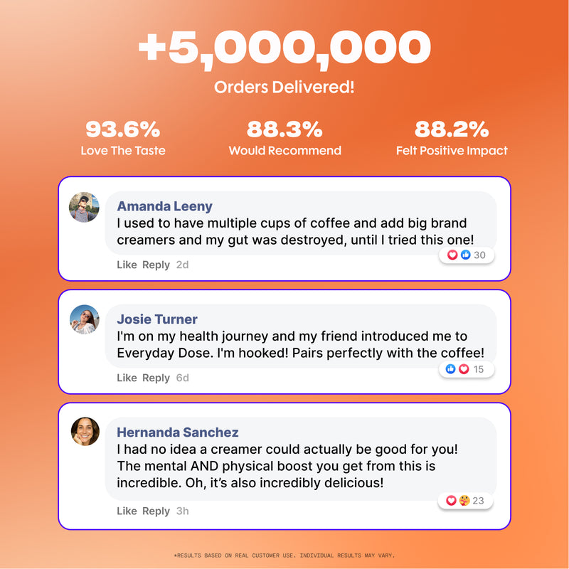 Everyday Dose is upgrading everyday staples like coffee, matcha, and creamer with collagen protein, mushrooms, nootropics, and probiotics to optimize your mental and physical health. Improve energy, mood, immunity, sleep, and gut health without any crash or side effects. No additives, natural flavors, seed oils, or fillers.
