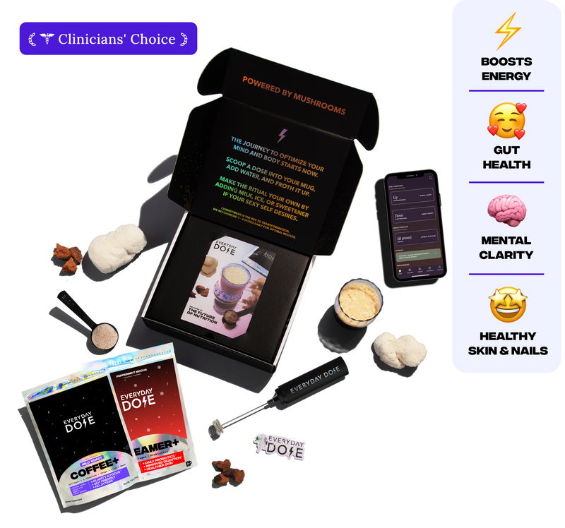 Think of a multivitamin where there's a lot of everything and not enough of anything – a theory proven by many doctors and researchers . Everyday Dose focuses on the two most effective mushrooms for the brain and body (Lion's Mane + Chaga) to give you an efficacious dose of double extracted fruiting body mushrooms. That way you are truly getting the benefits of mushrooms.Yes, there might be brands that lists out more mushrooms on their label, but there's not enough of anything to be clinically-proven as efficacious. We provide a curated formula with limited amounts of high quality, 100% fruiting body extracts working together to provide real, substantial benefits you will actually feel.