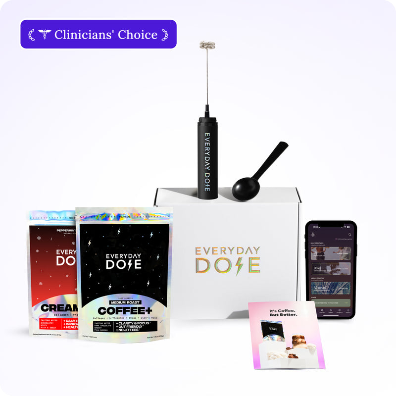 Everyday Dose addresses issues with regular coffee, while drastically building on its benefits. We took what we love about coffee (taste, ritual, and energy) and removed what we didn’t (crash, anxiety, jitters, poor sleep, and digestive issues). By blending low-caffeine, low acidity coffee extract with an effective quantity of four amazing ingredients that improve energy, focus, mood, sleep, gut health, and immunity, we created a drink that really can’t be compared to coffee aside from the taste and ritual... which is exactly what we were going for.